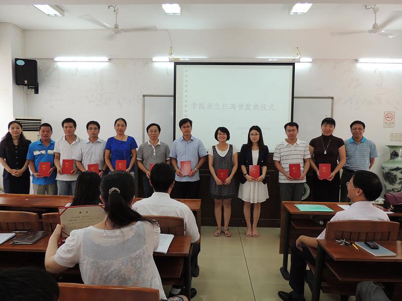 大会举行了学院班主任聘书发放仪式,院领导为受聘教师颁发了聘书。