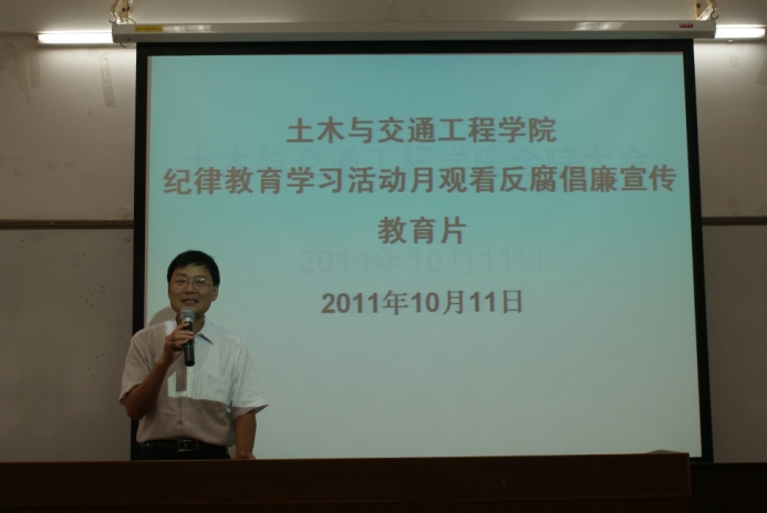 10月11日下午,学院召开全体教职工大会,对全体教职工在纪律学习教育学习月活动中的学习进一步作了要求,重点强调教职工在对外横向合作、洽谈科研项目以及科研经费的使用与管理中,要特别注意规范化与合法性。另外,也向教职工提出了认真做好学生考风考纪的教育要求。会后,全体教职工集体观看了反腐倡廉宣传教育片。